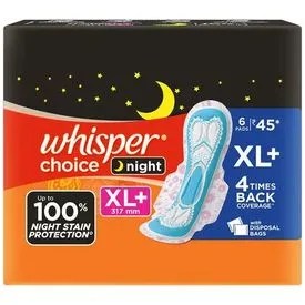 Whisper Choice Nights Sanitary Pads For Women, X-Large+,6 pcs
